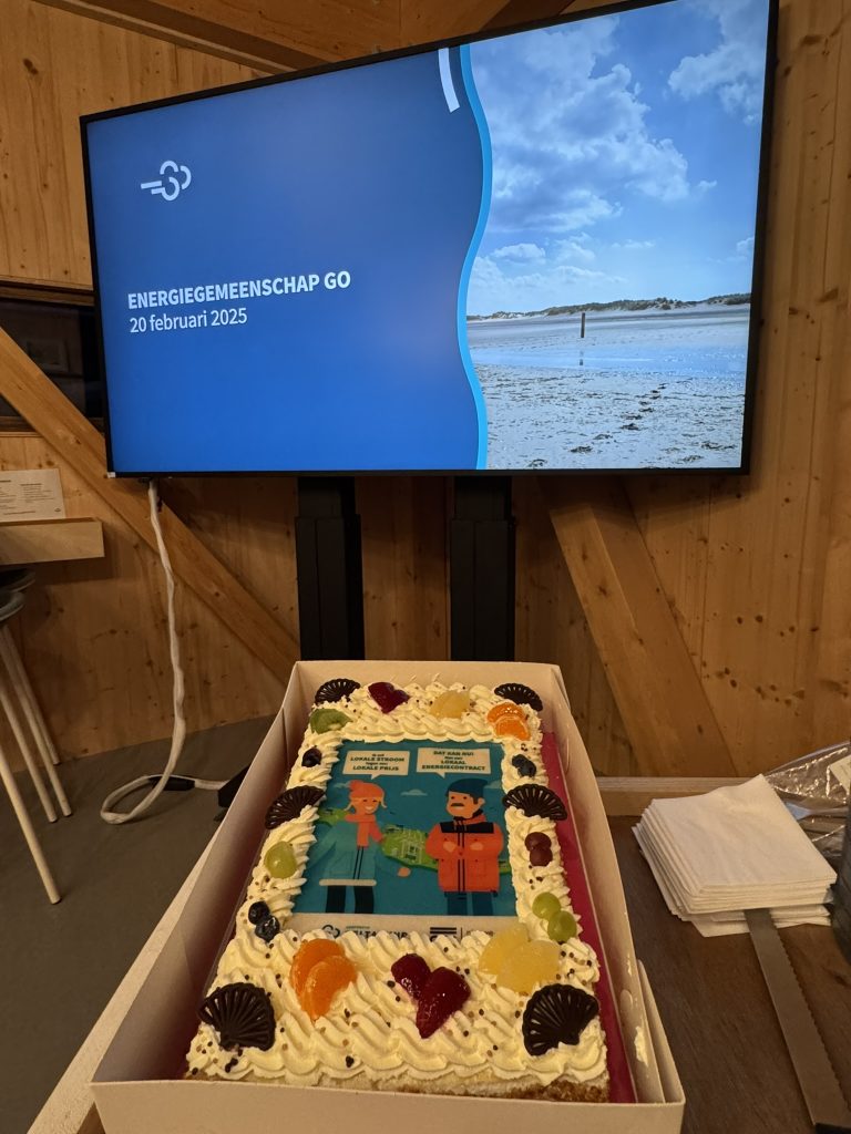 Met inmiddels meer dan 150 deelnemers was het tijd voor taart, aangesneden door een deelnemer van het eerste uur. Met de energiegemeenschap hebben we gesproken over hoe de stroomprijs tot stand komt, wat een collectieve batterij kan betekenen en welke informatie we met de gemeenschap delen om lokaal stroom te gebruiken wanneer deze lokaal wordt opgewekt. We hebben ook samen nagedacht over ideeën hoe we een ‘collectieve korting achteraf’ in gaan zetten.